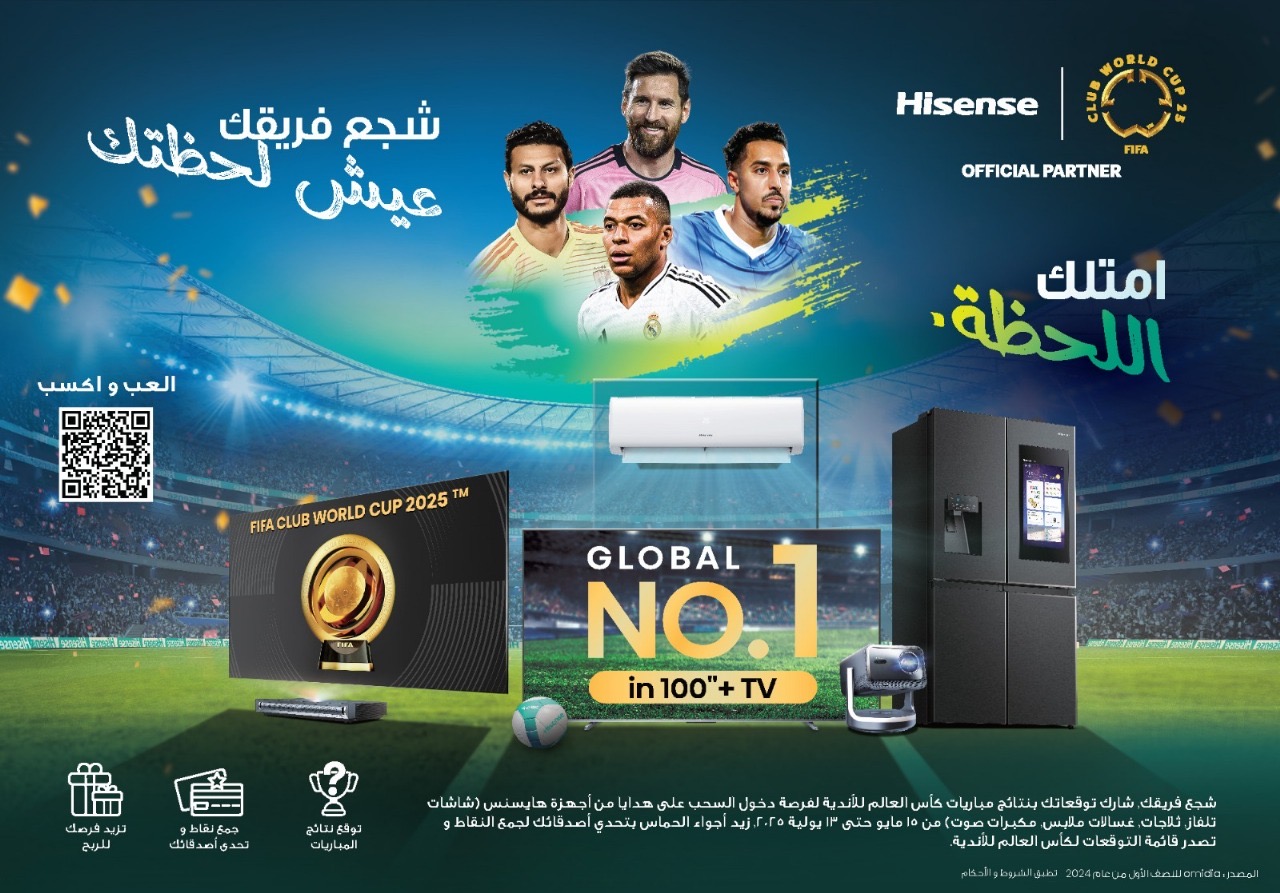 تُشعل هايسنس، الشركة العالمية الرائدة في الإلكترونيات الاستهلاكية والأجهزة المنزلية، حماس عشاق كرة القدم في المملكة العربية السعودية من خلال حملة ذكية وغامرة بالتزامن مع كأس العالم للأندية FIFA. تجمع الحملة بين توقع نتائج المباريات، وتجارب تفاعلية في صالة العرض، وتذاكر حصرية، لتقدم تجربة جماهيرية استثنائية مدعومة بتقنيات عالية الجودة ومشاركة تفاعلية.