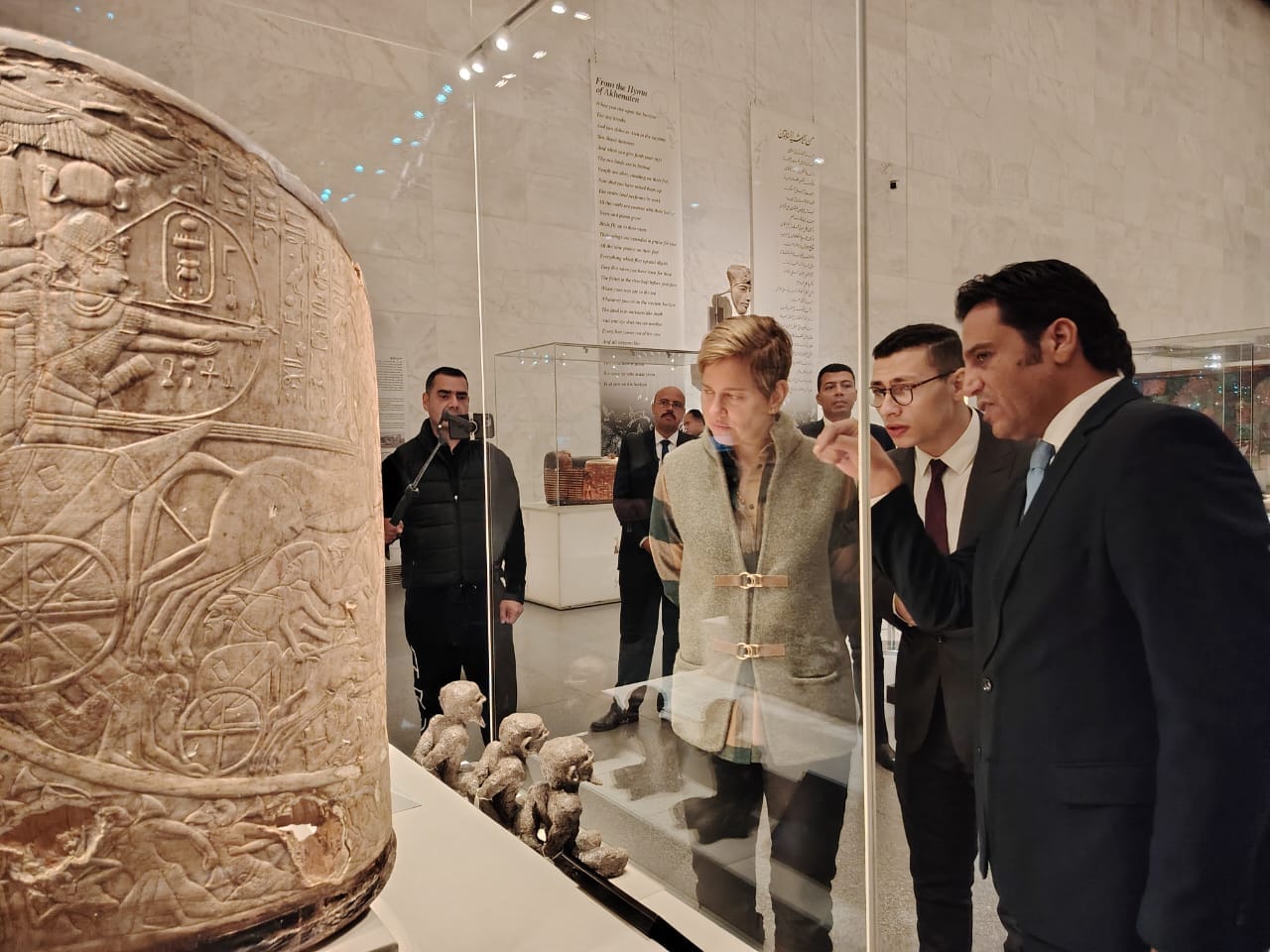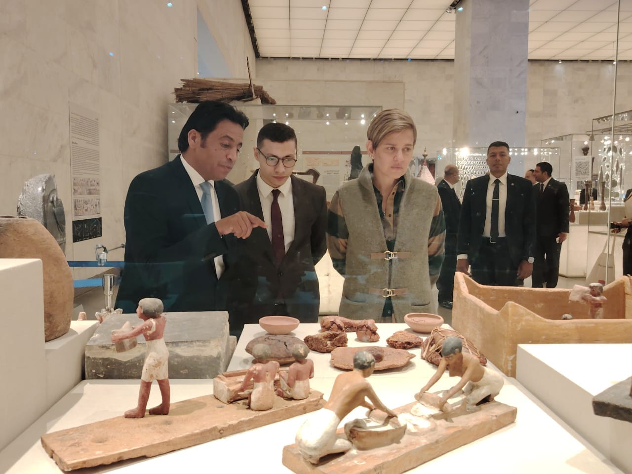 وحرص الدكتور الطيب علي اصطحاب السيدة فيرونيكا الكوسير جارسيا، والوفد المرافق لها في جولة داخل المتحف شملت قاعات كل من العرض المركزي والمومياوات الملكية والنسيج المصري تعرفوا خلالها على ما يضمه المتحف من مقتنيات أثرية فريدة تحكي تاريخ الحضارة المصرية العريقة على مر العصور.