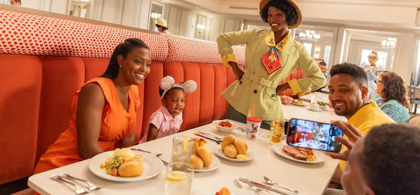 أثناء تناول الطعام على مجموعة من الأطباق الكلاسيكية والمستوحاة من ديزني ، يمكن للضيوف مقابلة بعض شخصيات ديزني المفضلة لديهم، بما في ذلك علاء الدين وسندريلا والأميرة تيانا وميرابيل.