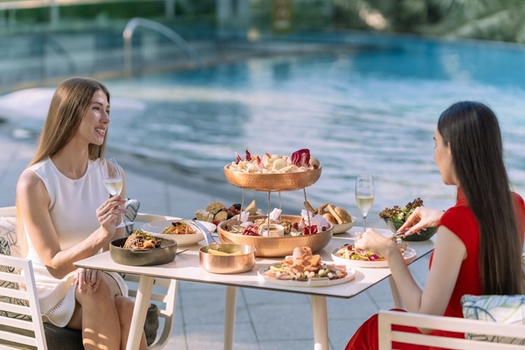 ادخل إلى عالم من الأناقة والنكهة مع الشيف التنفيذي جان باسكال إيريسو والشيف التنفيذي للحلويات غيوم ديتوش، وكلاهما من فرنسا، في مطعم La Brasserie Sur Le Boulevard، حيث يقومان بإعداد وجبة فطور وغداء فاخرة مليئة بتشكيلة من المأكولات المتوسطية والعالمية الممزوجة بالذوق الفرنسي. من الأسواق البروفنسالية النابضة بالحياة إلى السواحل الزرقاء، كل طبق هو عمل من أعمال الحب. تتميز المجموعة المتنوعة بالمأكولات البحرية الطازجة على الثلج والمحار المقشر حسب الطلب وركن السوشي والسلطات الحية. يمكن للضيوف الاستمتاع بكبد الإوز المقلي والمعكرونة المطبوخة مباشرة على عجلة البارميزان والشواء المباشر الذي يضم مجموعة متنوعة من قطع اللحم البقري ولحم الضأن والدجاج. يبرز التأثير المتوسطي، مما يضمن تجربة راقية ومريحة.