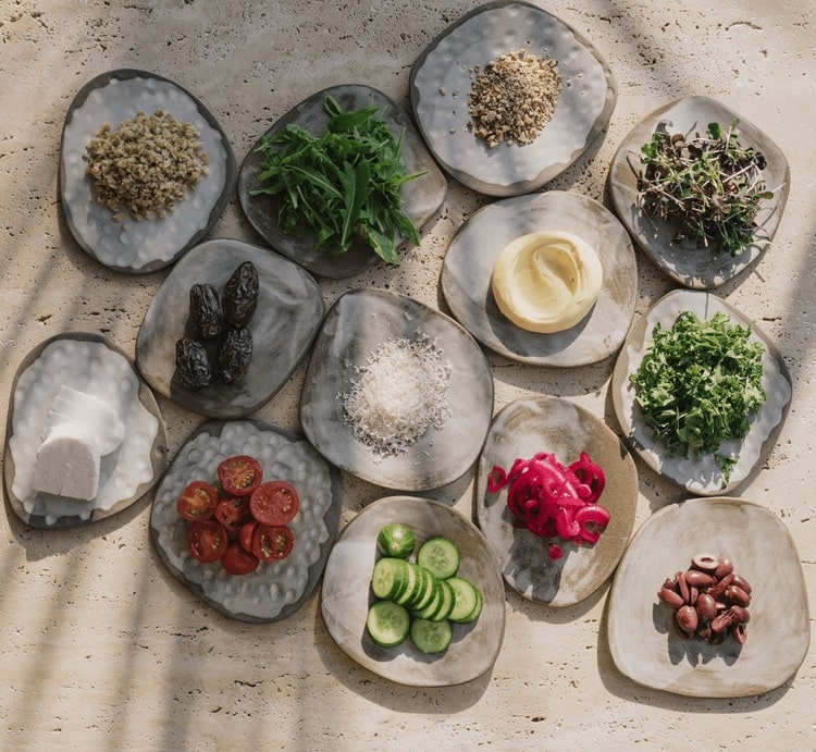 يتم الحصول على المكونات في الوعاء من Balade Farms وHealthy Farm Eatery وHatta Honey وVeggi Farms وAldahra Farms وHigh Grow وGreen Fields Farms وSouk Mandat وBayara Farms. من خلال اختيار المنتجات من هؤلاء الموردين المحليين، تواصل FLAVOUR FIELDS دعم المشهد الزراعي المزدهر في دولة الإمارات العربية المتحدة وتعزيز الاستدامة.