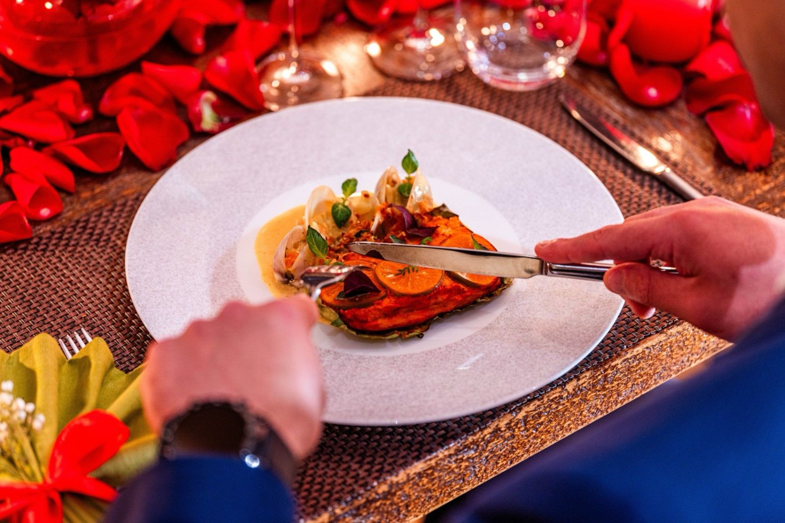 كما يرحّب مطعم أثير في فندق دبليو دبي ذا بالم بالعشاق في أمسية ساحرة مفعمة بالرومانسية والأناقة وتكتمل بلمسات شخصية مع رسائل الحب المُعدّة مسبقًا ووردة مُهداة لكل سيدة. ويعِد المطعم ضيوفه هذا العام برحلة إلى عالم الجمال والسحر مع أنغام موسيقى الجاز المباشرة وصوت مطرب عذب، لتكتمل التجربة مع مشروبات مُحضّرة بعناية وحلوى على شكل قلب تضفي طابعًا فريدًا على الأمسية، يوم 14 فبراير من الساعة 8 مساءً إلى 2 بعد منتصف الليل.
