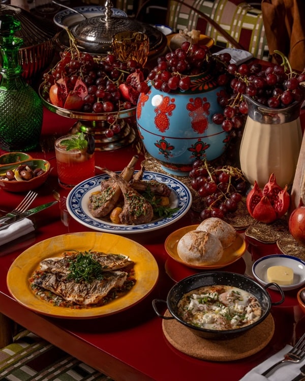 تلذذ بالمأكولات الشرق أوسطية المفضلة مثل حمص البنجر وحساء العدس وشرائح لحم الضأن، إلى جانب الأطباق البرتغالية والمتوسطية مثل سلطة الحمص والبطاطا الحلوة والباذنجان المشوي والدنيس المشوي.