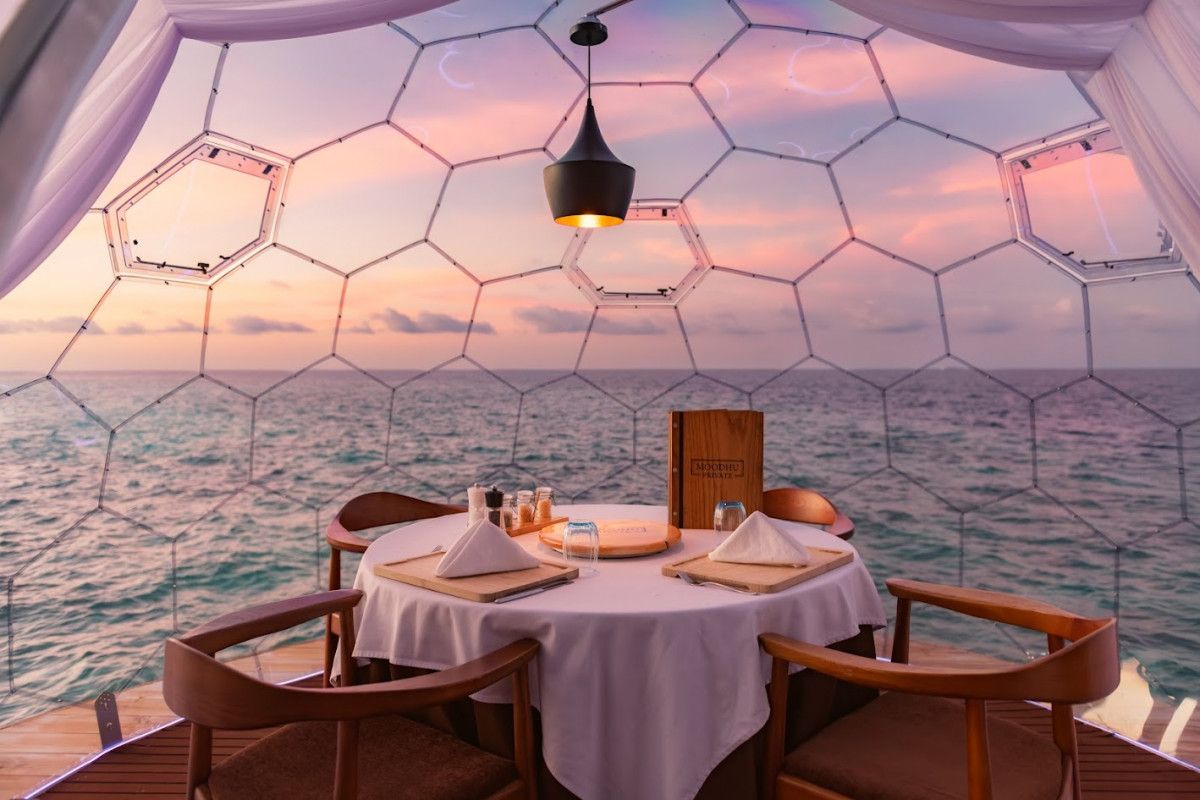 يأخذ منتجع منتجع أوتريجر مالديف ماافوشيفا تجربة تناول الطعام الفاخرة إلى آفاق جديدة مع تقديم خمس قباب فوق الماء في تجربة تناول الطعام المميزة الخاصة به Moodhu Grill. تم تصميم هذه الكبسولات الخاصة لخلق تجربة طعام حميمة لا تُنسى، حيث توفر للضيوف فرصة الاستمتاع بالطعام الرائع أثناء الجلوس فوق الشعاب المرجانية، مع إطلالات بانورامية خلابة على الأفق والنجوم أعلاه.