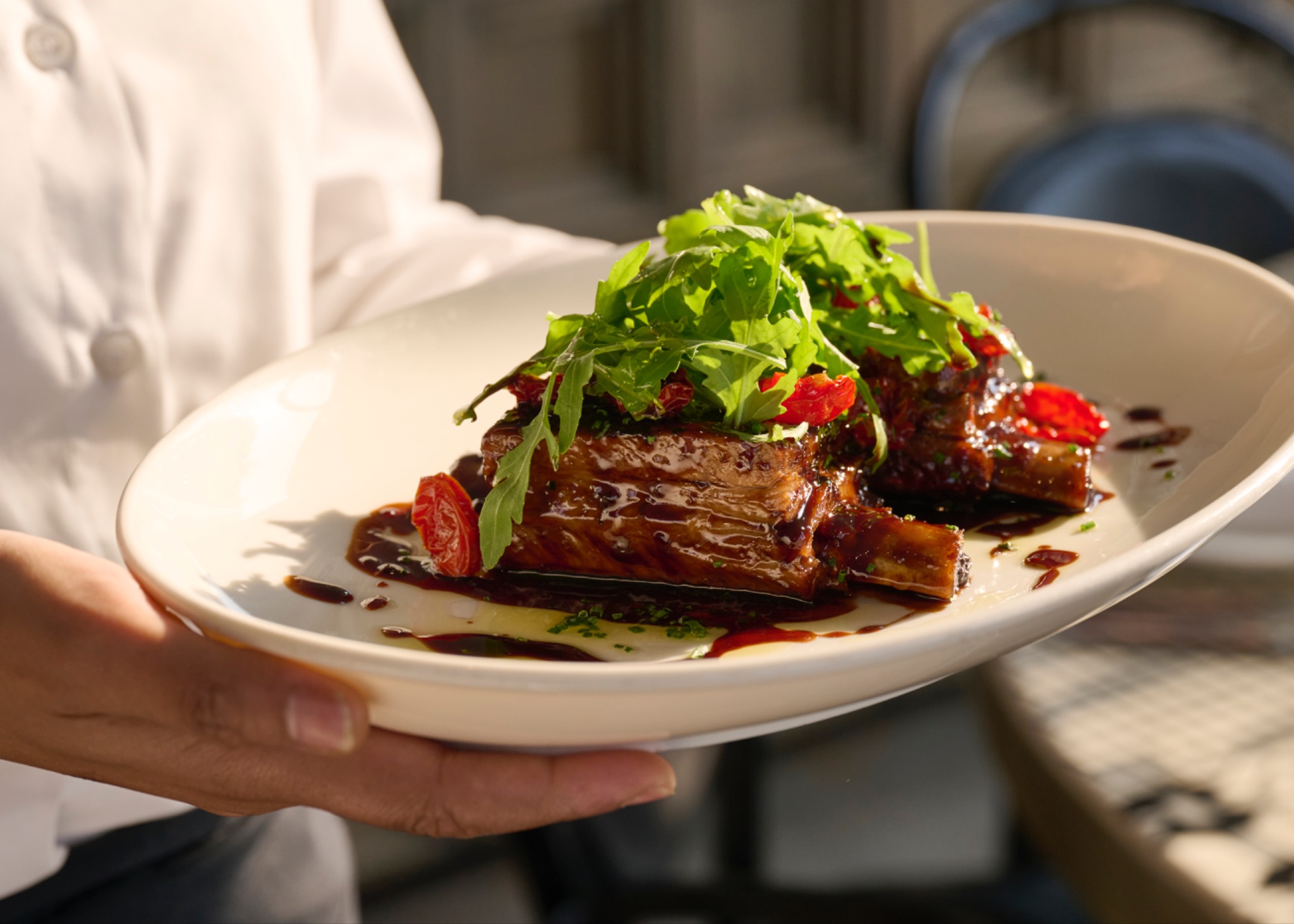وللطبق الرئيسي، انغمسوا في ضلوع العجل المطهوة ببطء مع صوص بوردولي، حيث يُطهى ضلع العجل حتى يصبح طريًا، ويُقدم مع صلصة بوردولي بنكهاتها العميقة وقوامها الذي يذوب في الفم.