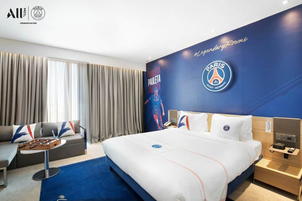 تتميز الغرفة بلوح رأس سرير مستوحى من فن البوب يحمل صورة باوليتا، وصورة فوتوغرافية مؤطرة عتيقة، وقميص كرة قدم موقع. صُممت كل تفصيلة بعناية لتعكس جوهر باريس سان جيرمان، بدءًا من السجادة المصممة خصيصًا، والوسائد وبياضات الأسرّة ذات الطابع الخاص، وصولًا إلى ملصق النافذة. كما تعرض المساحة تذكارات موقعة لحذاء وكرة في عرض واقٍ، ومصباحًا مستوحى من باريس سان جيرمان، مما يضفي على الغرفة حيوية الملعب. تُجسّد تجربة غرفة بيدرو ميغيل باوليتا الأسطورية مزيجًا مثاليًا بين شغف كرة القدم والراحة التي تشتهر بها نوفوتيل.