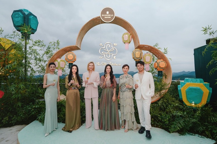 انضمت إلى رئيس مجلس إدارة مجموعة شانغريلا، هوي كوك (الثالث من اليمين)، الممثلة الحائزة على جائزتي أوسكار كيت بلانشيت (الثالثة من اليسار)، والممثلتان الشهيرتان تانغ وي (الثانية من اليسار) وكارينا لاو (الثانية من اليمين)، وراقصة الباليه الشهيرة تان يوان يوان (الأولى من اليسار)، وعازف البيانو الشهير لانغ لانغ (الأول من اليمين) في حفل الافتتاح الكبير لفندق سيلك ليك هاوس، شانغريلا هانغتشو، الفندق الرئيسي لمجموعة شانغريلا سيغنيتشرز التي أُطلقت حديثًا.