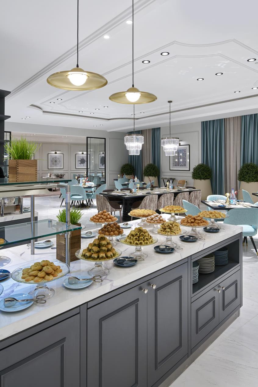 وتستمر التجربة مع مجموعة من الحلويات المستوحاة من المطبخ المغربي التقليدي، حيث يقدّم بسكويت العسل والسمسم، والغريبة الناعمة، والبسبوسة، لتضفي لمسة من الحلاوة الدافئة وتنوّعاً في القوام، مقدّمة لكل ضيف مذاقاً أصيلاً من التراث. كما تكتمل التجربة مع خدمة الشاي المغربي بالنعناع المعدّ مباشرة أمام الضيوف، حيث يُسكب بأسلوب استعراضي أنيق، ناشراً عبير النعناع المنعش في المكان، ليختتم الأمسية بنغمة دافئة وعطرة لا تنسى.