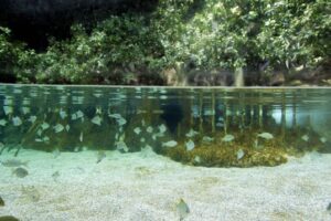 وعند وصولهم للنهاية سوف يجودون غرفة قاع البحر، إذ يوجد داخلها مشهداً لا يصدق من مجسمات السفن وبقايا القوارب متناثرة في المكان، لتجسد بيئة الحياة البحرية من الشاطئ وحتى الأعماق، في مشاهد طبيعية تحبس الأنفاس.