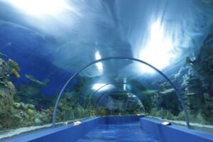 ويتميز المتحف بنفقه الزجاجي الفريد، حيث يعبر في مياه البحر، ويمكن للزوار مشاهد الأسماك على طول النفق، ومن كافة الاتجاهات.
