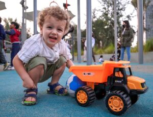 منطقة اللعب الناعمة والنوافير ستجعل الأطفال الصغار مشغولين ، بينما التصميم ذو المخطط المفتوح يفسح المجال جيدًا للمشاة وراكبي الدراجات وعربات التزلج.