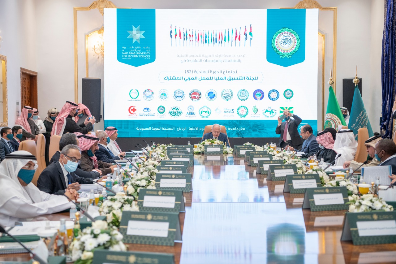 وأوضح آل فهيد بأن المنظمة فى بداية كلمتها قدمت الشكر لمعالى الامين العام لجامعة الدول العربية على حرصه الدائم لدعم جهود لجنة التنسيق العليا للعمل العربي المشترك بما يعزز تنمية وتطوير العالم العربي فى كافة مجالاته ، مواصلا شكره لمعالى رئيس جامعة نايف للعلوم الامنية على حسن الاستقبال والتنظيم المتميز للاجتماع مشيراً بأن المنظمة قدمت تقريراً عن أهم إنجازاتها وعن التعاون المشترك مع المنظمات العربية الشقيقة حيث نظمت بالتعاون مع المنظمة العربية للتنمية الإدارية ورشة عمل عن التحول الرقمي للسياحة العربية : نحو سياحة عربية بينية ودولية آمنه حيث تناولت الورشة أهمية التحول الرقمي في مجال السياحة كتغيير مستدام وليس فقط لمجابهة تحديات وباء كورونا (Covid-19). ونظرة عامة على التحول الرقمي في الصناعات المتصلة بصناعة السياحة والتحول الرقمي كمطلب أساسي للسائح مستقبلاً ودور التسويق الإلكتروني في قطاع السياحة وتعزيز الابتكار في جودة الخدمات السياحية المقدمة ومقومات تنمية السياحة العربية البينية والدولية ، كما نظمت المنظمة بالتعاون مع الأكاديمية العربية للعلوم والتكنولوجيا والنقل البحري العديد من الدورات التدريبية إبان جائحة كورونا دربت من خلالها أكثر من 10 آلاف متدرب والآن يتم تنفيذ برنامج ضخم بمنحة مجانية كاملة بالتعاون مع شركة جوجل العالمية لتدريب ووتنمية قدرات العامليين فى القطاع السياحى بشقيه العام والخاص في المملكة العربية السعودية وجمهورية مصر العربية ودولة الإمارات العربية المتحدة كمرحلة أولى ، وايضا قامت كافة منظمات العمل العربي المشترك بتقديم تقارير انجازاتها أمام معالى الامين العام ، مشيرا بأن الاجتماع قد ناقش عددًا من البنود، منها: متابعة نتائج الدورة 51 للجنة السابقة، وورقة التحول الرقمي وبناء القدرات في مجال الذكاء الاصطناعي بالمنطقة العربية والتي أوصت على حث الدول العربية بالتعاون مع الأمانة العامة للجامعة ومؤسسات العمل العربي المشترك ذات الصلة على توحيد الجهود وبناء الكوادر البشرية العربية في مجالات التحول الرقمي والذكاء الاصطناعي التي تناسب قدراتها مع متطلبات الثورة الصناعية الرابعة بما يحقق الأهداف والطموحات المستقبلية العربية، دعوة الدول العربية والأمانة العامة للجامعة وبالتعاون مع مؤسسات العمل العربي المشترك ذات الصلة لتقديم الدعم لمنظومة التعلم المهني المبتكر وتوفير التدريب التقني بشهادات دولية في مجالات التحول الرقمي والذكاء الاصطناعي والأمن السيبراني بما يحقق الربط بين الجانب النظري والتطبيقي لإعداد متخصصين وتأهيلهم لسوق العمل، حث الدول العربية ومؤسسات العمل العربي المشترك على استقطاب الكفاءات العربية ذات الفكر الإبداعي في مجالات التحول الرقمي والذكاء الاصطناعي وبما يمكن من التعرف على احدث مستجدات التقنية والتحول الرقمي والذكاء الاصطناعي، دعوة الأكاديمية العربية للعلوم والتكنولوجيا بالتعاون مع الأمانة العامة للجامعة ومؤسسات العمل العربي المشترك ذات الصلة لعقد ورش عمل ودورات تدريبية لبناء قدرات الكوادر العربية المختلفة في مجالات التحول الرقمي والذكاء الاصطناعي ، والتفاعل عربياً لمواجهة الهيمنة الرقمية، والتغير المناخي وآثاره على التنمية الاقتصادية والاجتماعية في المنطقة، وأيضًا تقرير الأمانة العامة عن قمة جلاسجو حول تغير المناخ، إضافة إلى عدد من الموضوعات التي تثير الاهتمام العربي، حث الدول العربية على الاهتمام بأهمية بناء القدرات البشرية الرقمية العربية وتغيير طريقة التفكير للمديرين، دعوة الدول العربية والأمانة العامة للجامعة بالتعاون مع مؤسسات العمل العربي المشترك ذات الصلة والشركات العالمية المتخصصة لطرح برنامج عربي للمنح لبناء قدرات الشباب العربي ، دعوة الدول العربية بالتعاون والتنسيق مع الأمانة العامة ومؤسسات العمل العربي المشترك ذات الصلة لإنشاء منصة رقمية للتوعية العامة وتنمية المعرفة ومحو