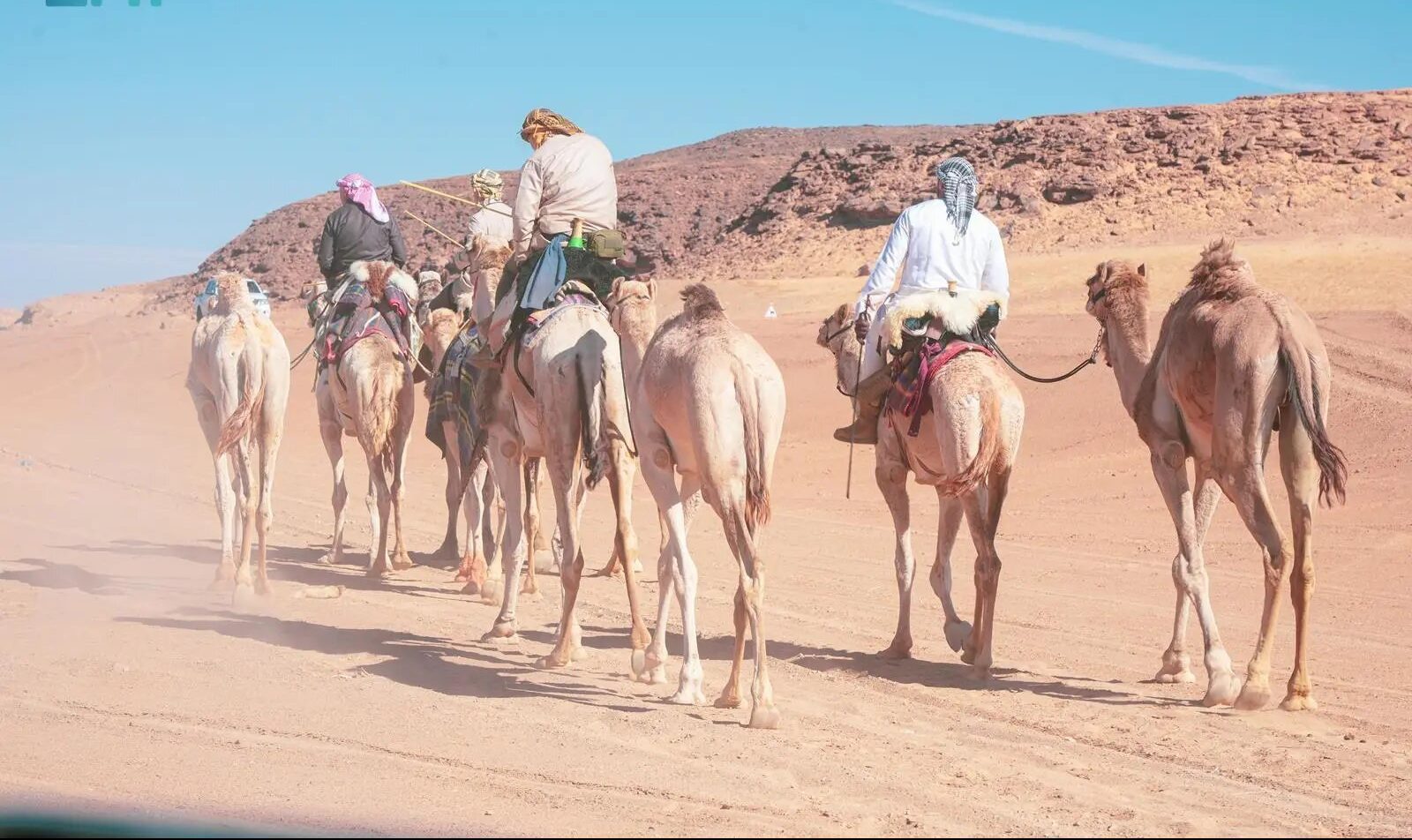 انطلقت اليوم رحلة لـ 5 رحالة بريطانيين على ظهور الإبل لقطع ما يقارب 500 كلم داخل أراضي محمية الملك سلمان بن عبدالعزيز الملكية ليشاهدوا خلالها جمال طبيعتها وتنوّعها الفطري وعراقة تاريخها الأثري.